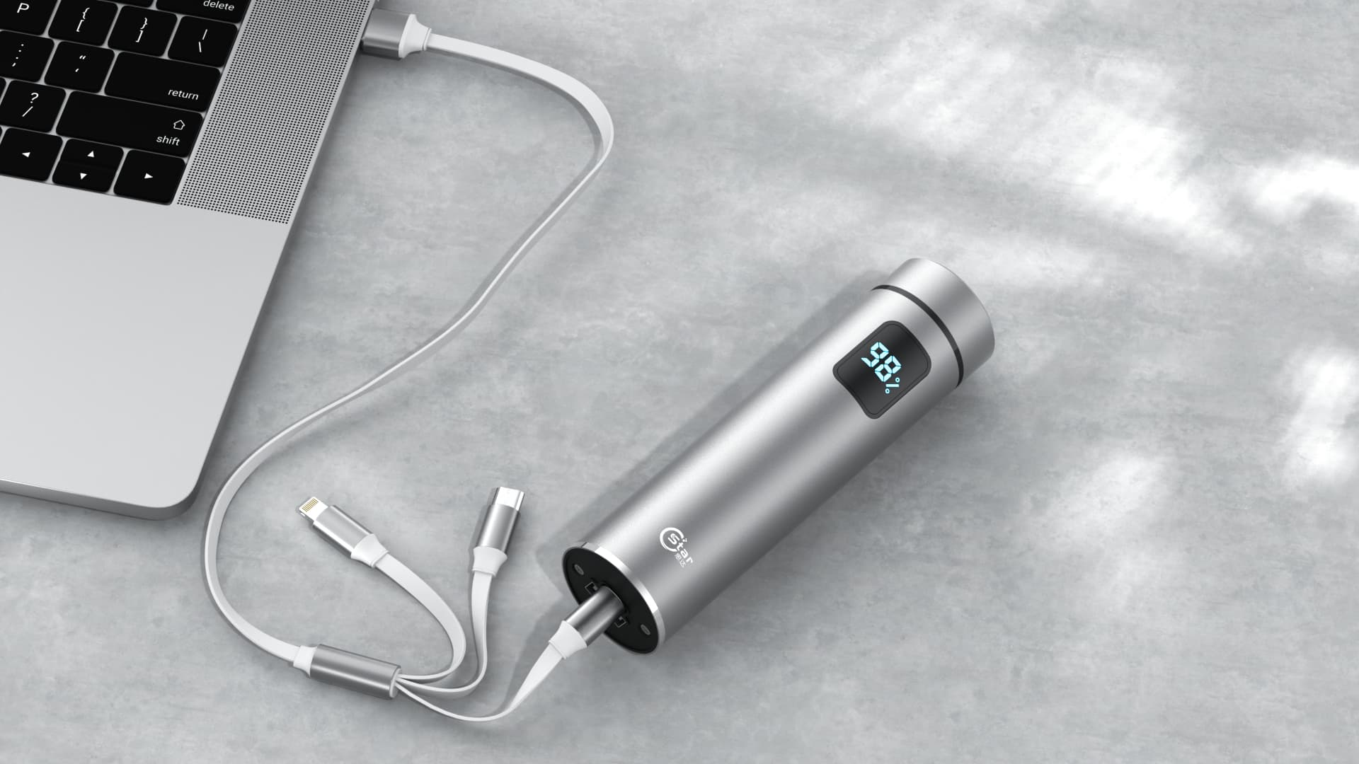 一体化全金属机身设计,喷砂阳极氧化的处理,搭配黑色镜面显示屏,简洁而富有科技感。同时配备 USB 充电端口,在出行旅途中还可作为应急移动电源使用。