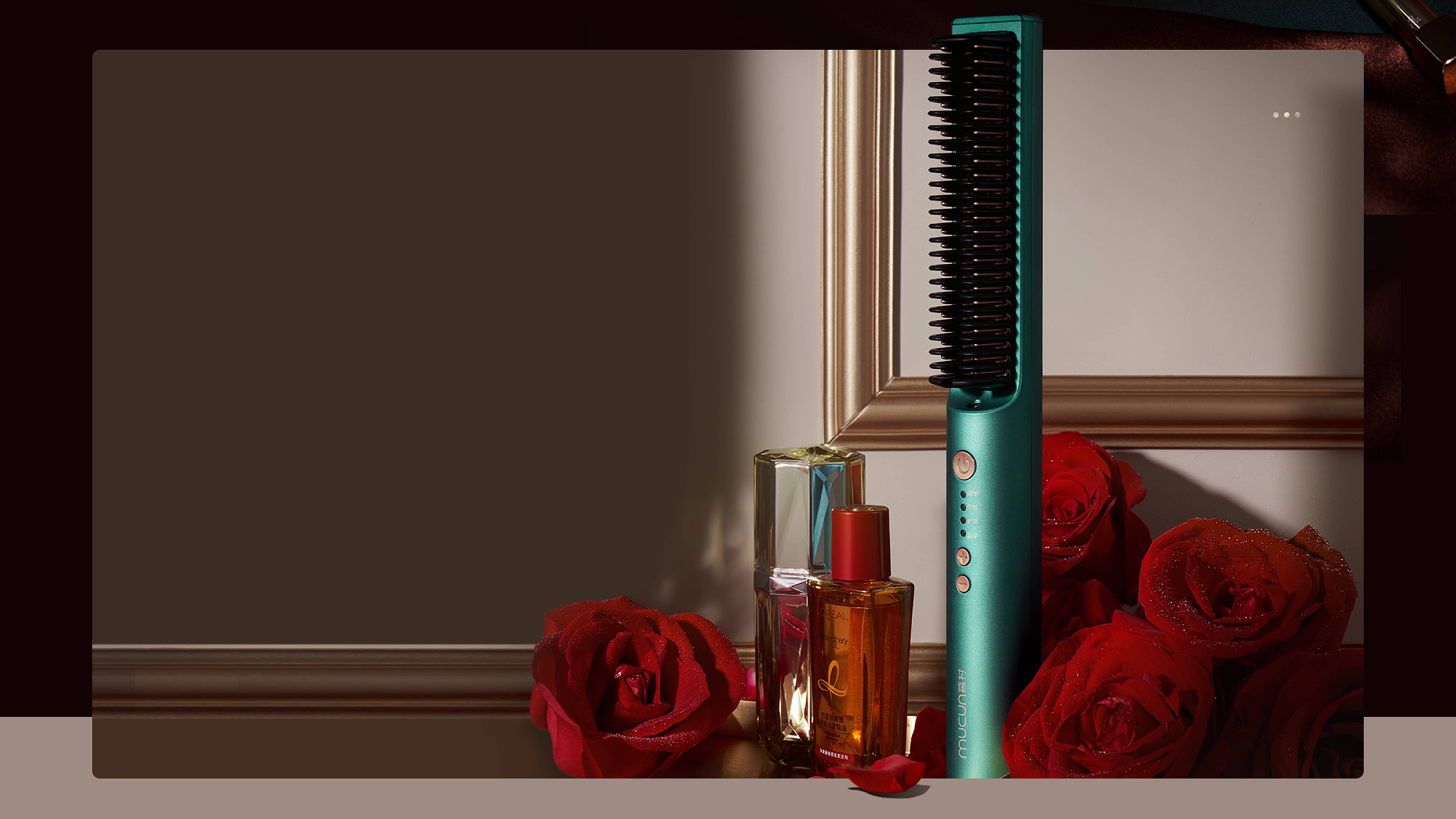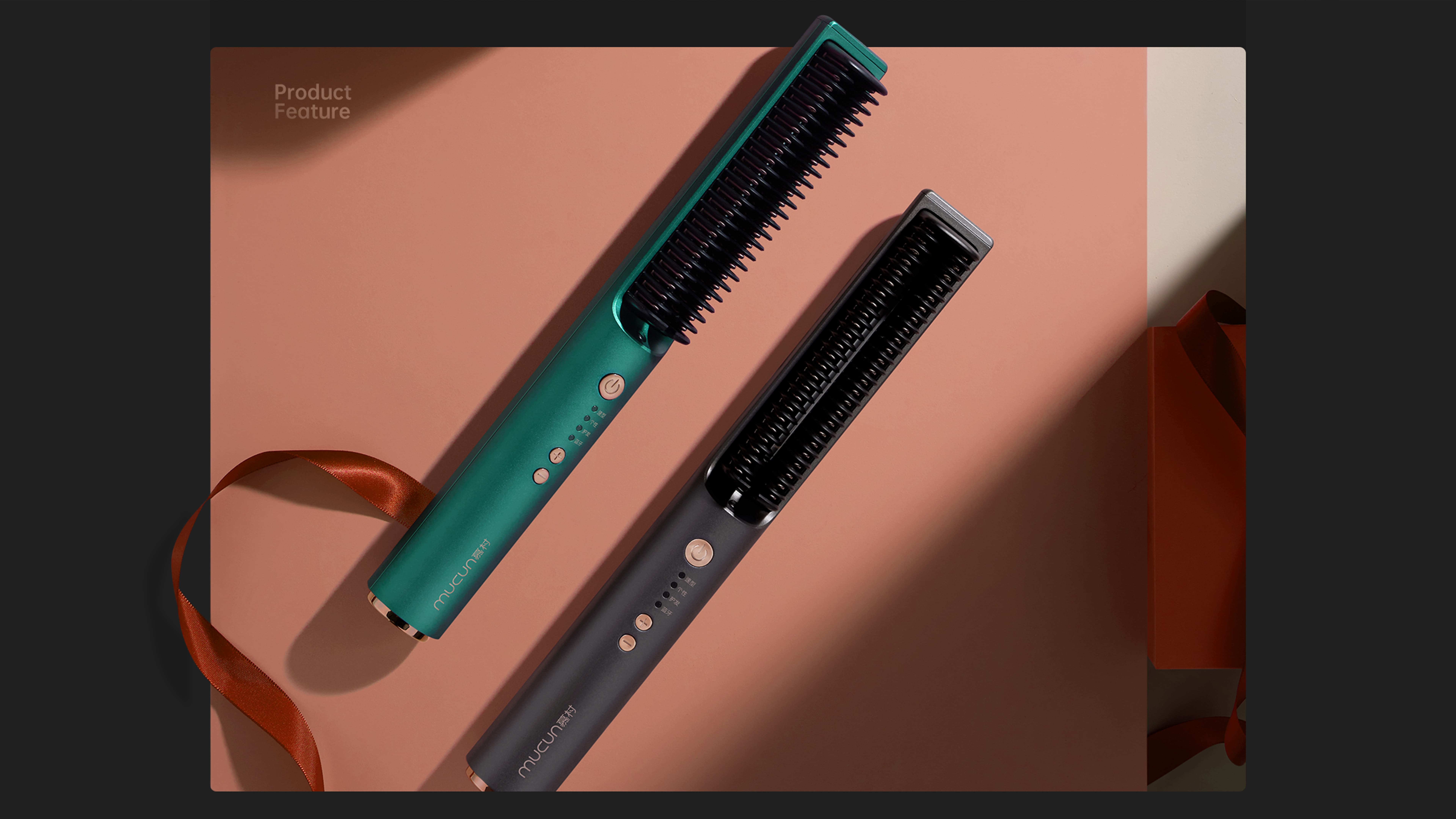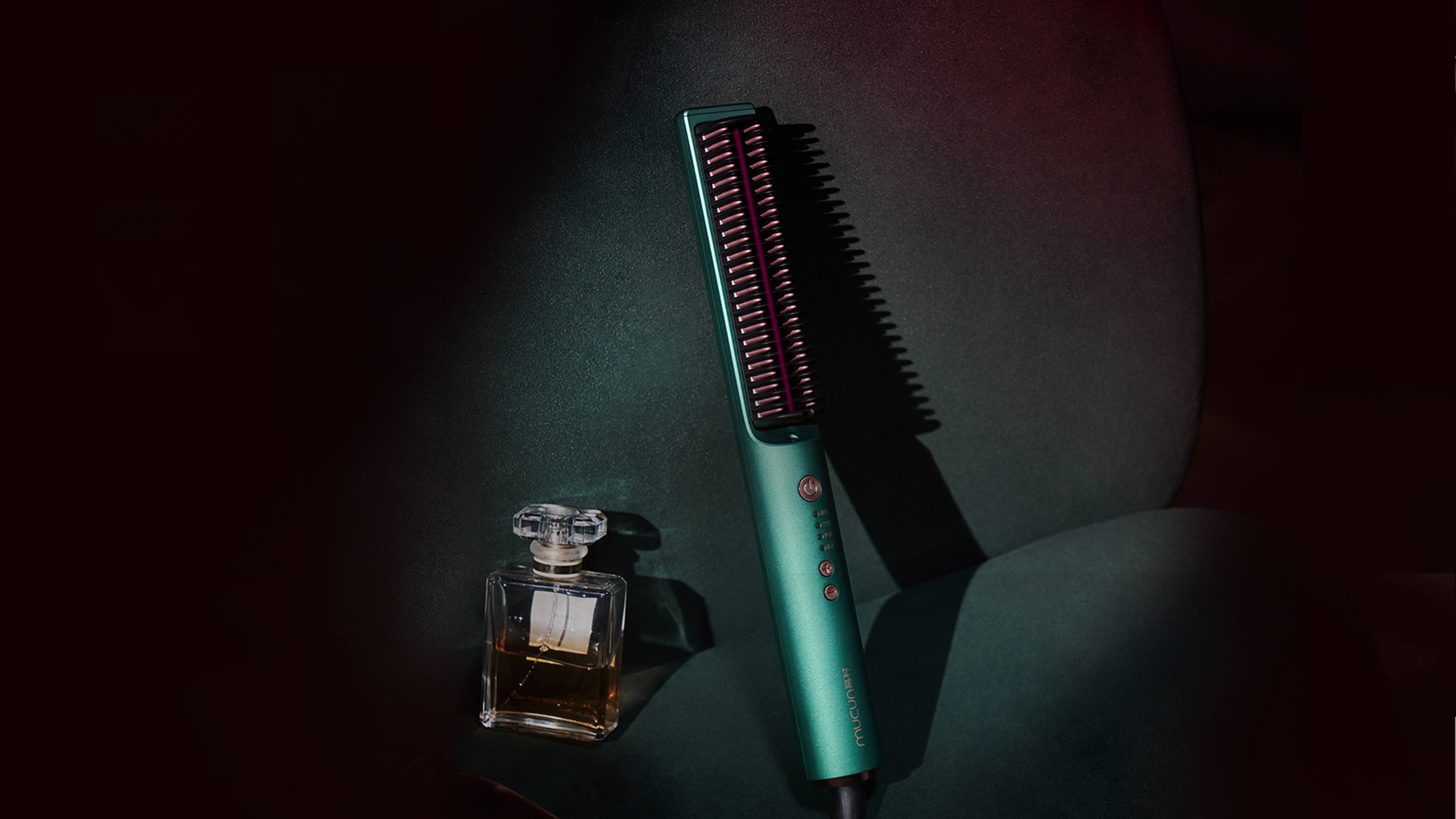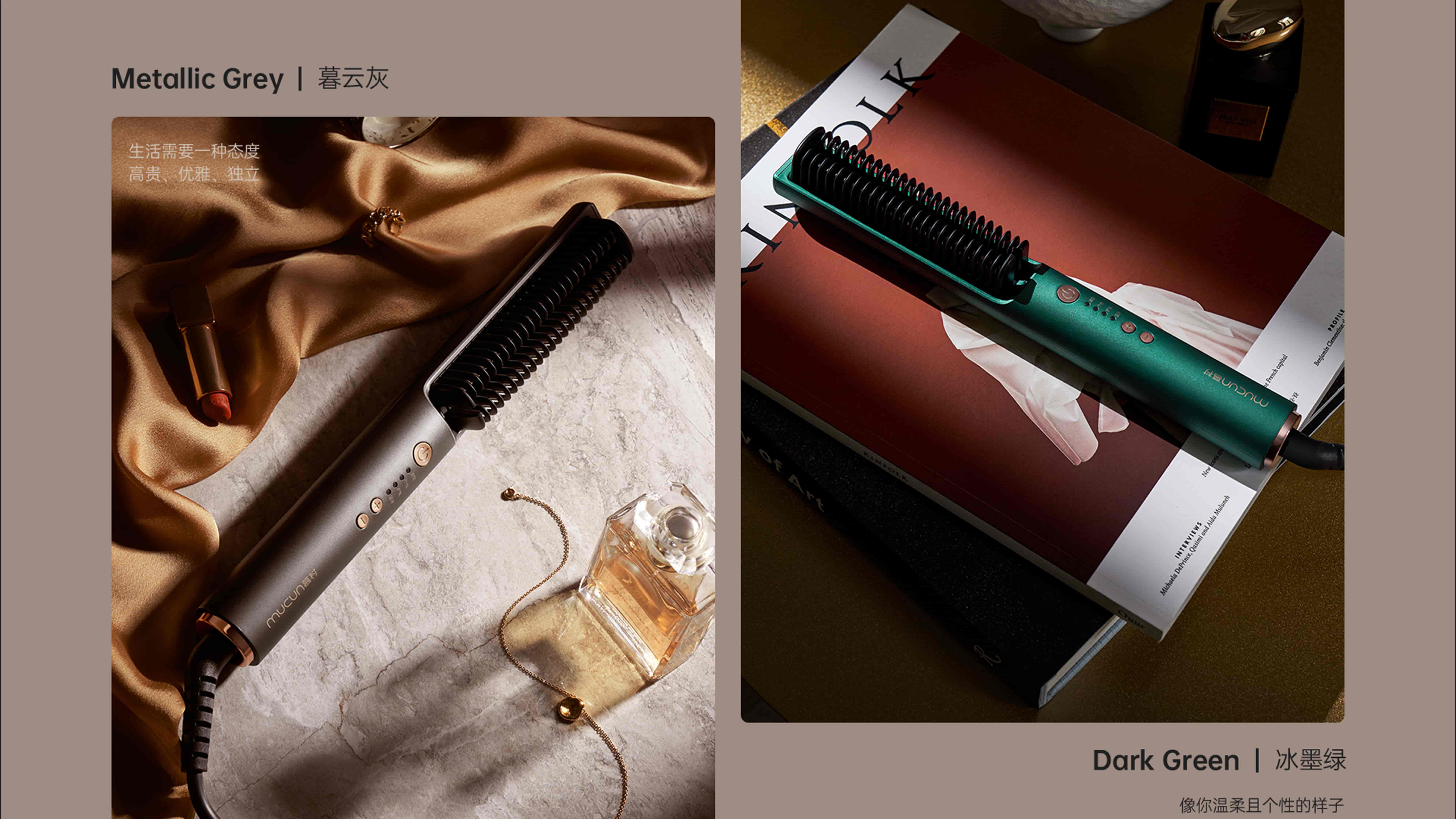 mucun 慕村,追求定制化体验的年个护品牌。唯物工业设计极致简洁的柱形外观独具科技感,梳子、按键、出线口布局克制严谨,CMF 设计高级符合未来。